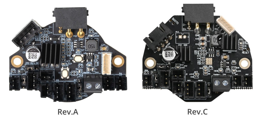 The only difference between our Rev C and Rev C+ boards is the addition of mounting “ears” on the Rev C+ version. These ears provide an extra installation point, making the board more secure and stable when mounted. It’s a small change, but it adds extra firmness for setups that need a more solid hold.